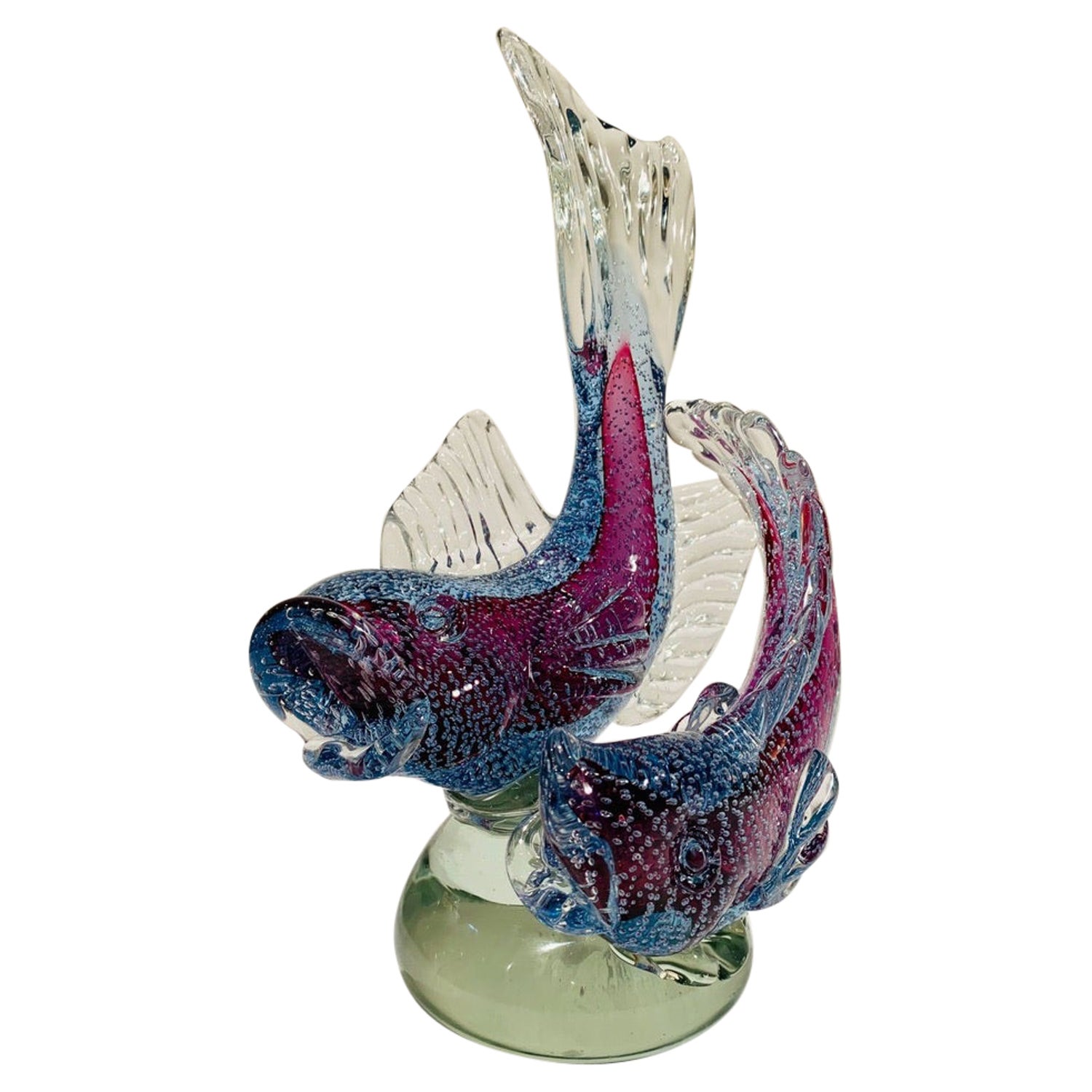 Angel Fishes Murano Glass Sculpture Chalcedony Art