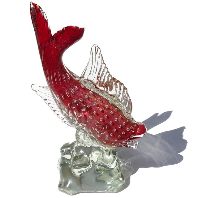 Murano Sommerso Red Gold Flecks Bubbles Italian Art Glass Fish Figure Sculpture Mid Century Era Chairish